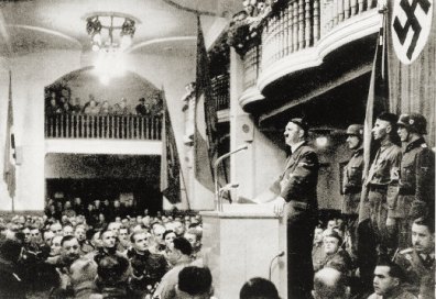 Hitler speaking to his Old Fighters in the Bürgerbraükeller in Munich