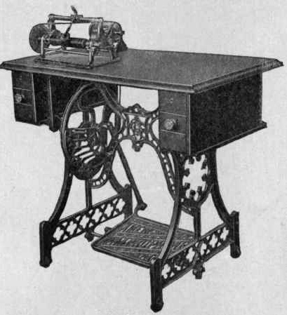 A treadle-operated graphophone of the sort used by Sydney Morse; the recording device is the small object on the top surface. From a contemporary trade catalogue.