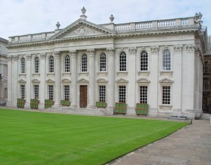 The Senate House at the University of Cambridge, where examination results were historically read aloud each June. Today results are posted on the noticeboards shown; their peculiar green tinge is known as “Cambridge blue.”