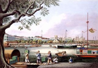 The Chinese port of Fuzhou, starting point for the great Tea Races, in about 1860.