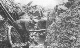 A German trench in December 1914. Workmanship was far less sophisticated than it became later in the war, and the muddy conditions were terrible.
