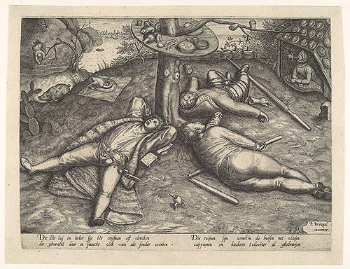 The Land of Cockaigne, in an engraving after a 1567 painting by Pieter Bruegel the Elder. Cockaigne was a peasant’s vision of paradise that tells us much about life in the medieval and early modern periods. A sure supply of rich food and plenty of rest were the chief aspirations of those who sang the praises of this idyllic land.