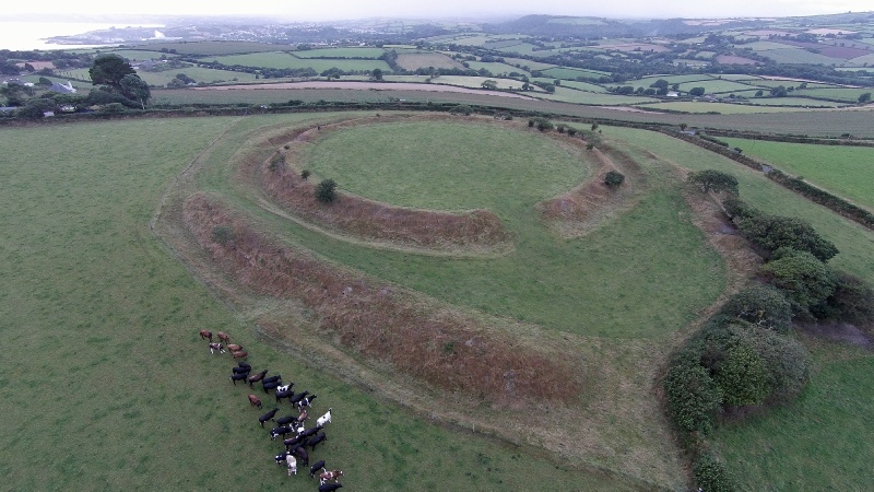 The hill fort at Castle Dore, near Fowey. It dates to the Iron Age but remained in use at least as late as the Roman occupation.