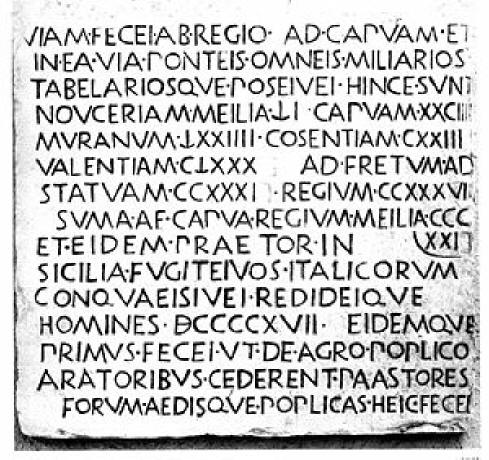 The '"Polla elogium," an inscription found in Basilicata in the central Appennines which dates to the 2nd century BC, records the deeds of a Roman consul. It includes mention of the rounding up of 917 runaway slaves who had crossed to the mainland from Sicily – a statement read by several scholars as evidence that the island was haunted by unrest in the years leading up to the outbreak of the First Servile War.