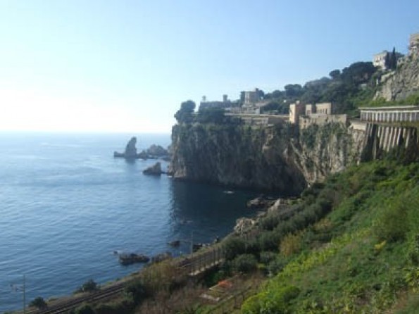 Taormina – Roman-era Tauromenium – showing the dramatic cliffs from which Eunus's rebel garrison were hurled to their deaths after the fall of the city.