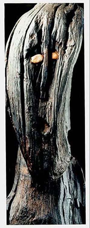 The Ballachulish figure – a bog or crossing guardian, dug from a peat grave in the highlands of Scotland in 1881. This image shows her as she is today, more than a century after the crude methods of preservation then available permitted her to dry out. See below right for an image of the goddess as she originally appeared.