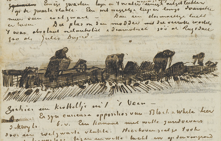 This sketch by Vincent Van Gogh, dating to October 1883, shows Dutch women working at peat-cutting in the traditional labour-intensive way. Bodies unearthed by hand were much more likely to survive intact than those exhumed by the modern, heavily-mechanised peat extraction industry.