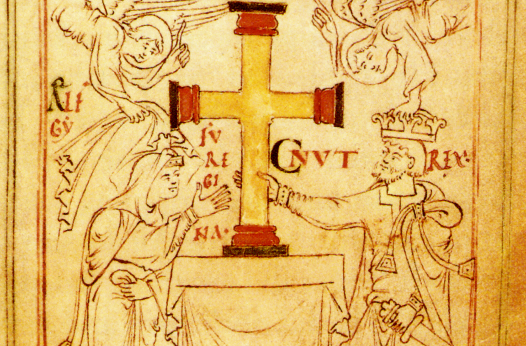 Cnut the Great (right) and his wife, Emma. The Danish warlord took the Saxon throne by conquest in 1016, but his marriage to a Norman woman would have consequences for the kingdom three decades after his death.