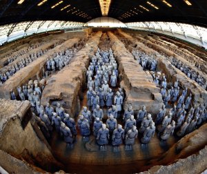 The members of the Terracotta Army constructed to guard Qin Shihuangdi in death are now a major symbol of the emperor’s wealth and power.